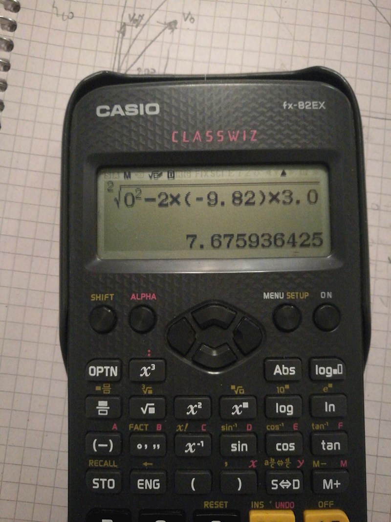 Nu säger du två olika saker. Det vi räknade ut innan var ju v0? Att v0 och g har samma riktning har väl att göra med att v0 kastas snett nedåt. är s0 sträckan från början som uppgiften gav oss dvs 4,0 m? Då måste sträckan vid nedslag vara s=0?