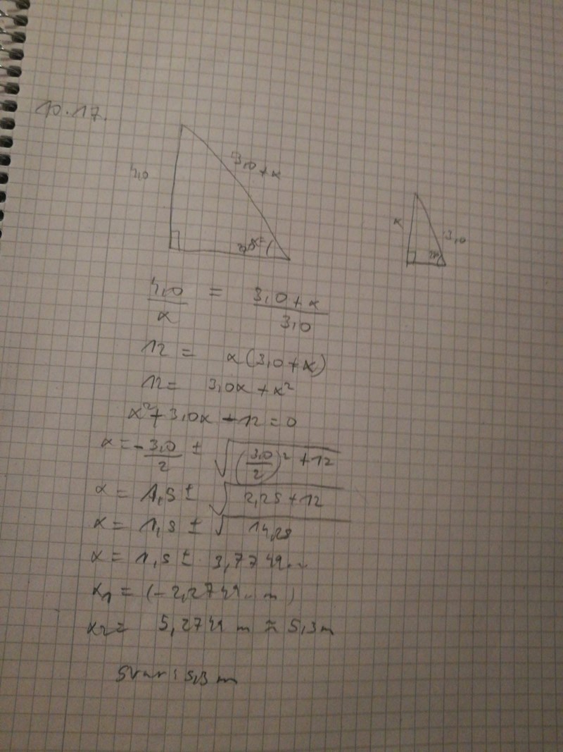 jag löste 10.17 med hjälp av likformighet men jag får ej som facit