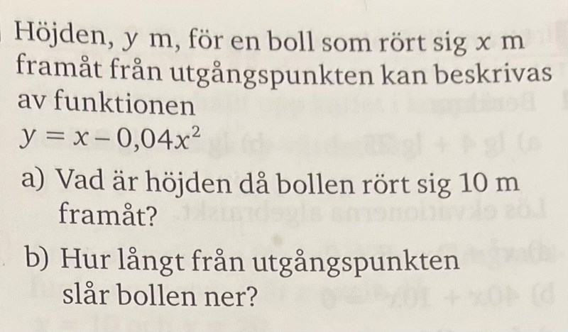 Så kan man ta reda på x, alltså hur långt bollen har åkt.