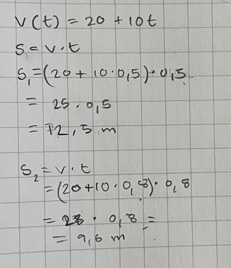 Bestäm alltså den primitiva funktionen till v(t) så får du s(t)