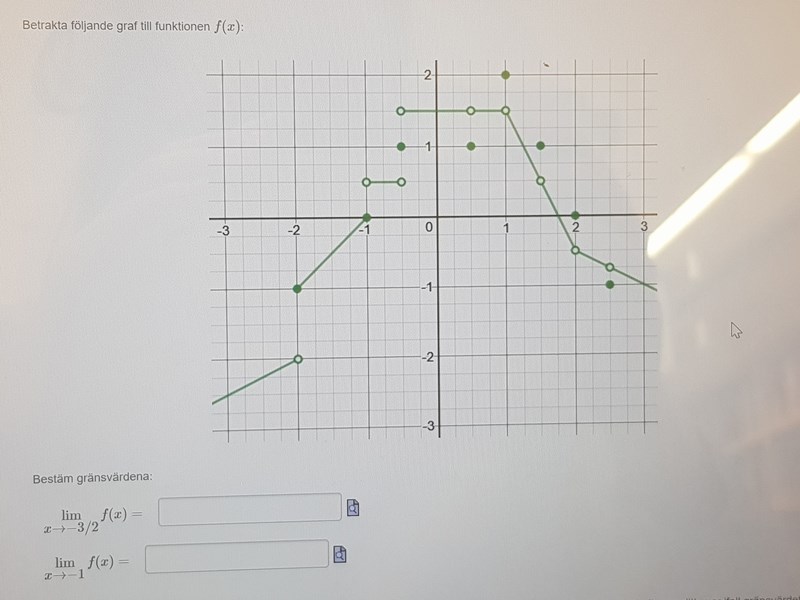 Du har ju en graf som visar vilket värde y(x) har för alla värden på x. Om det är en linje är det bara att läsa av y-värdet. Om det är en fylld ring hör detta y-värde ihop med x-värdet. Om det är en ofylld ring hör detta y-värde inte ihop med x-värdet.