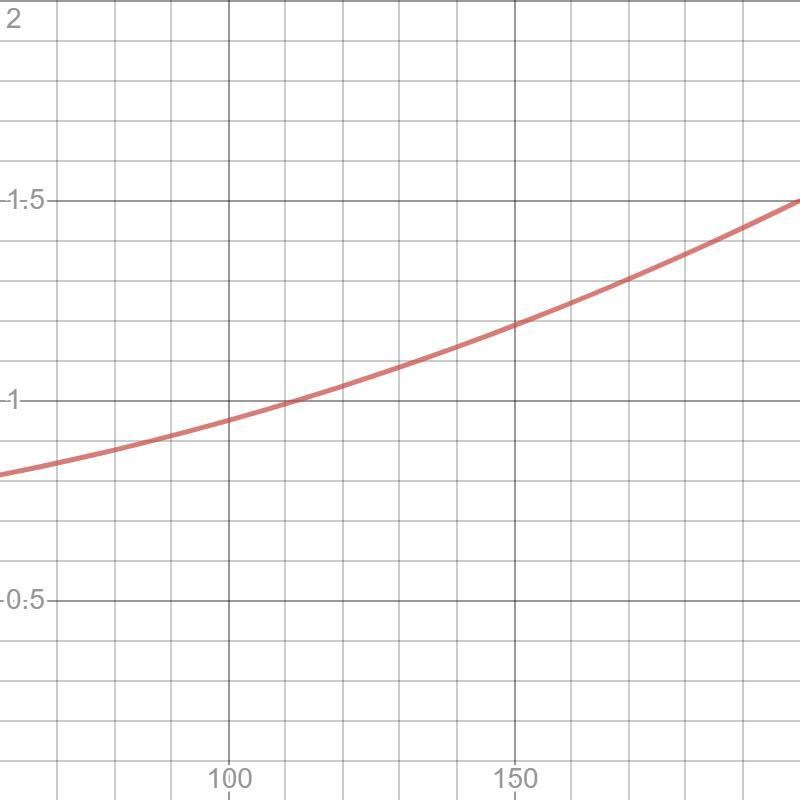 Skriv in den i Desmos, justera axlarna så att x går från (t ex) 60 till 200. Då får du en sådan här bild: