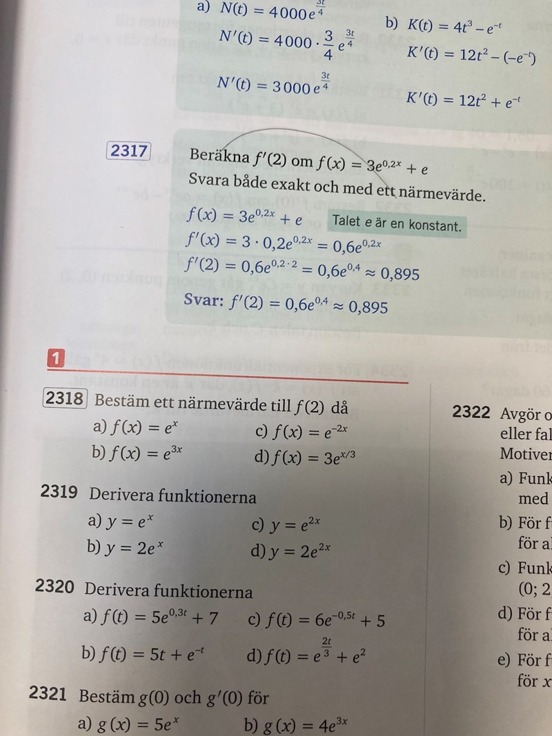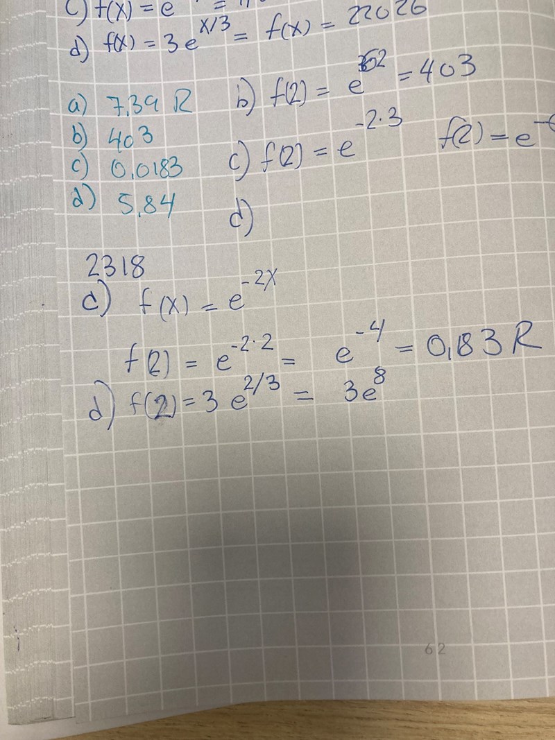 jag har löst dom andra. Hur gör jag med koefficienten Slår jag in X = 8 och skriver in ”3e ^8/2” får jag annat svar än facit.