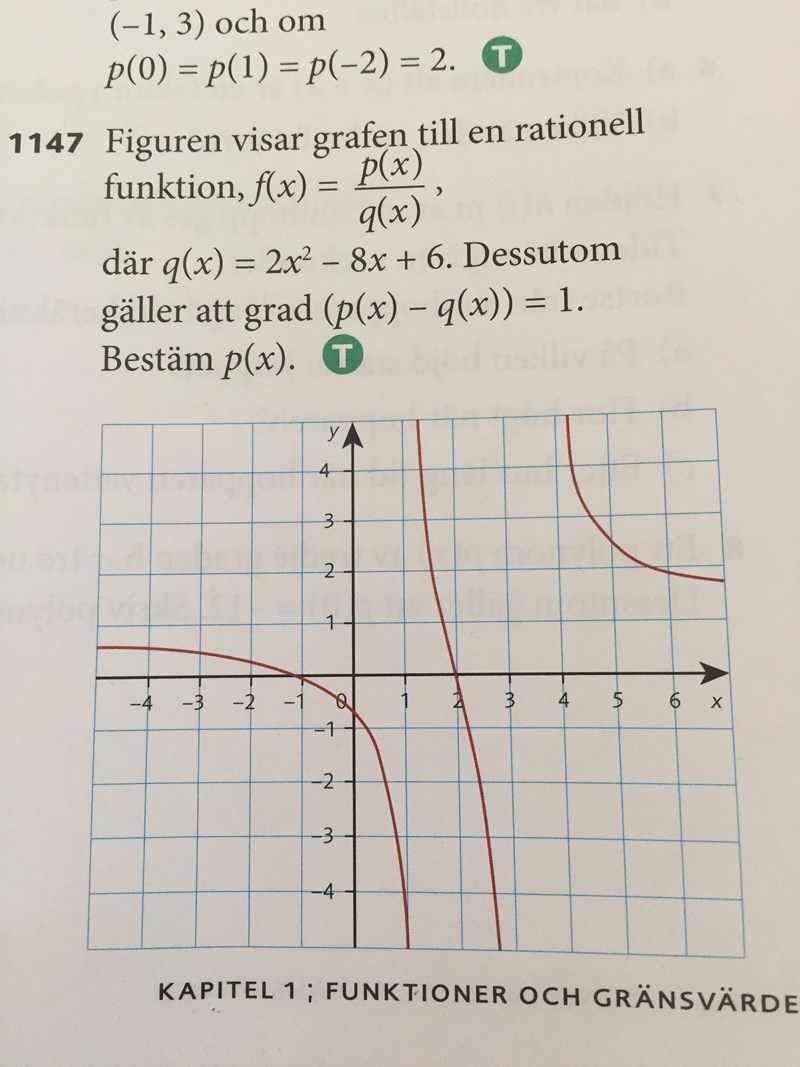 Vad innebär det att grad(p(x)-q(x))=1? Vilken grad har polynomet p(x)?