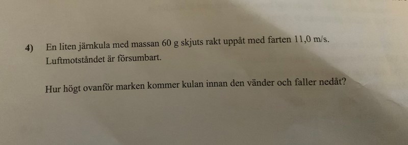 Beräkna den kinetiska energin (rörelseenergin mv2/2) som järnkulan får av kastet.