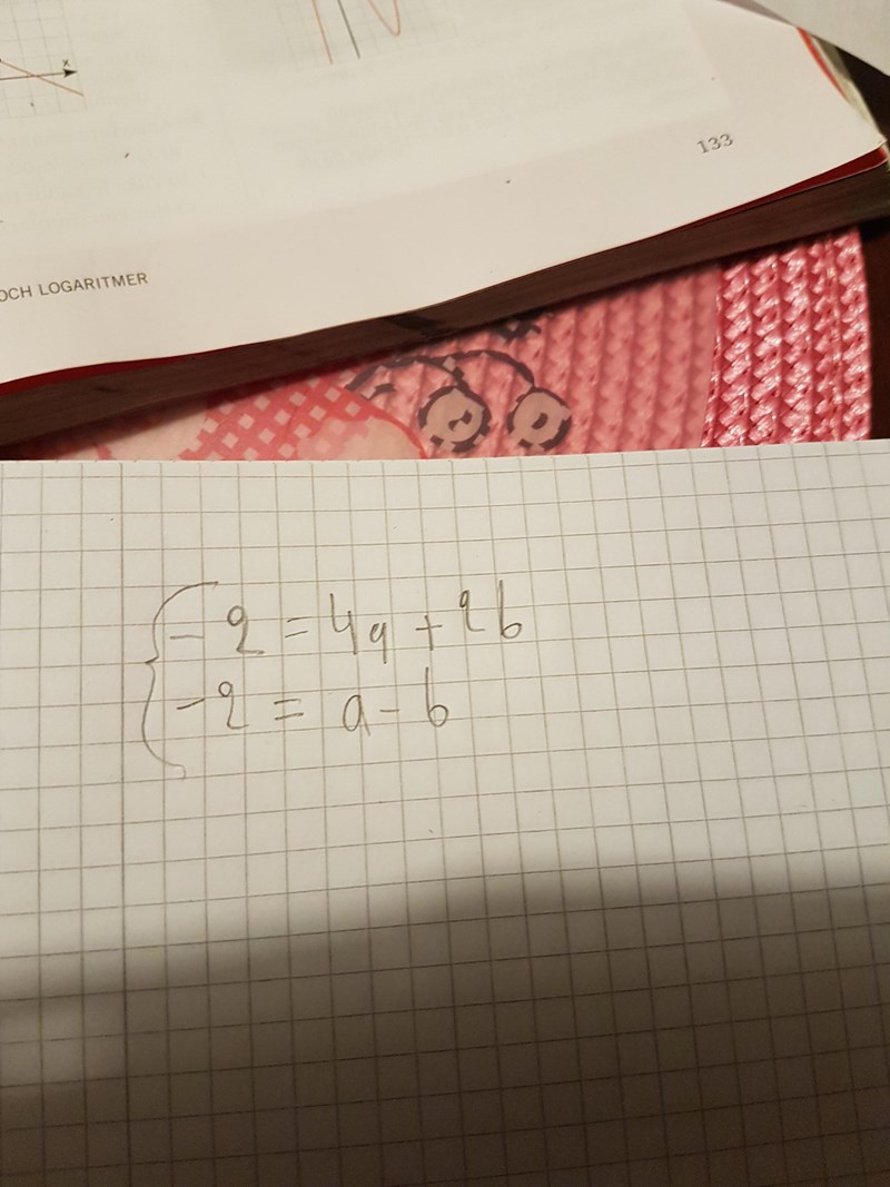 Ta sedan den översta ekvationen och byt ut a mot (b-2)