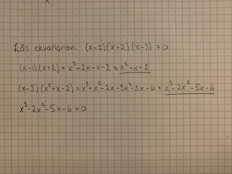 Tricket är att se, att detta är en "nollprodukt". Då måste endera faktorn i ursprunglig ekvation vara noll. Är du med?