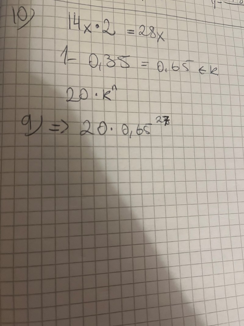 Den 2:a tabletten "varar" i 26 tidsintervall (då 26 tabletter ätes) och har kvar "kraften" 20 0.65^26 vid slutet