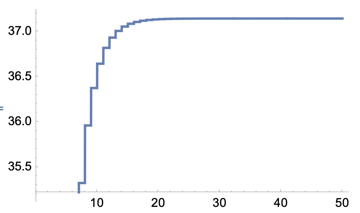 = 20 0.65 (1-0.65^27)/(1-0.65) = 37.