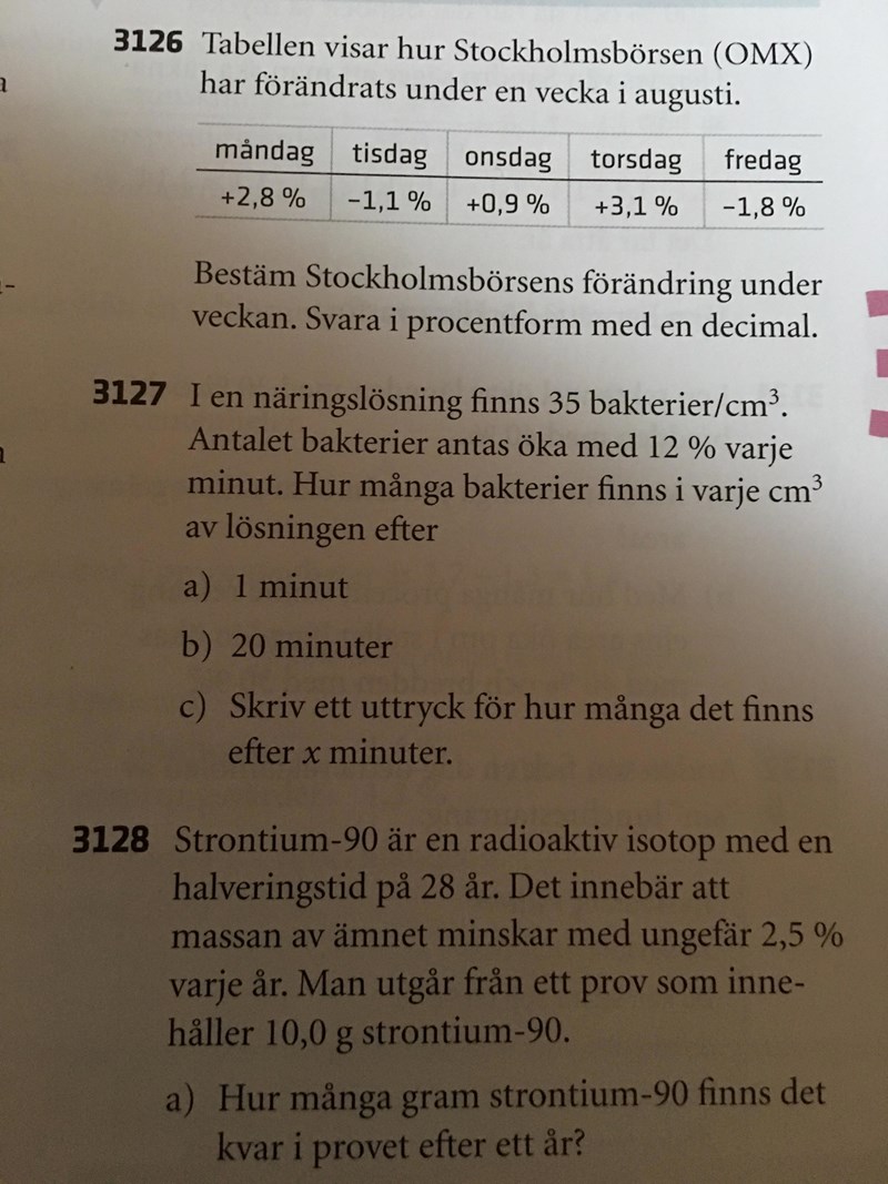 Bakterierna kommer öka med 12% varje minut, det är alltså korrekt att efter 1 minut är det efter ytligare en minut kommer den öka 12% igen alltså