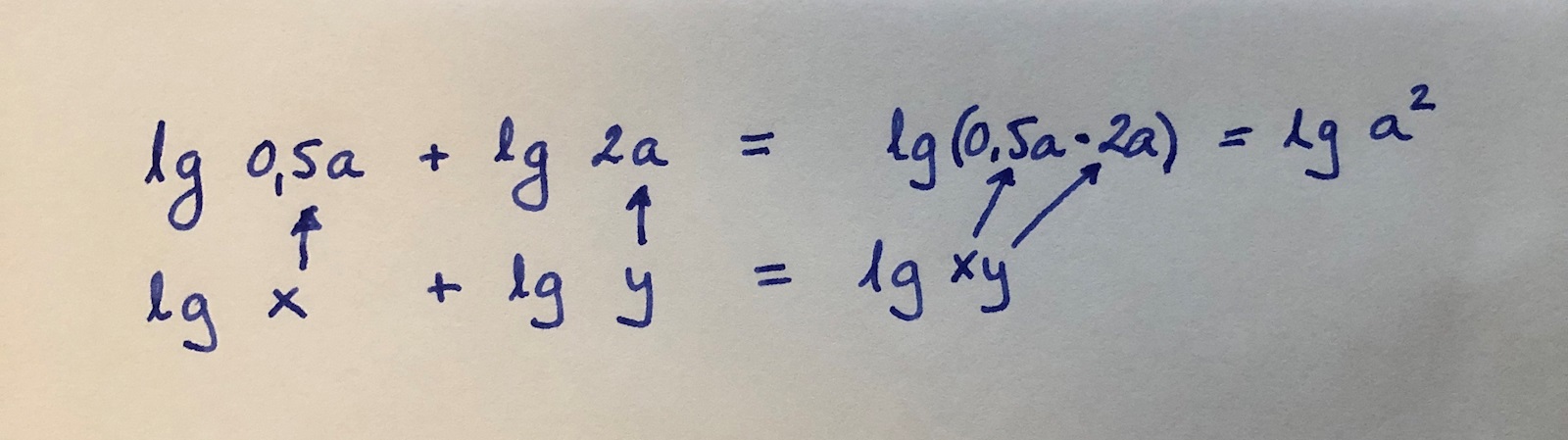 Enligt boken gäller det alltså att lg(xy) = lg(x)+lg(y)