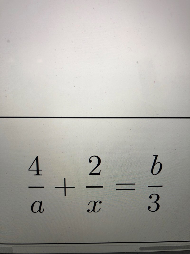 Vänstersidan består av två termer. Subtrahera termen inte innehåller x (alltså 4/a) från båda sidorna.