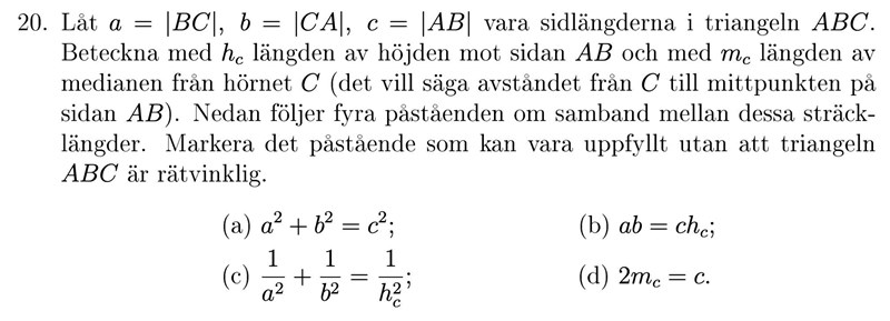 Har du konstruerat en icke rätvinklig triangel som uppfyller c?