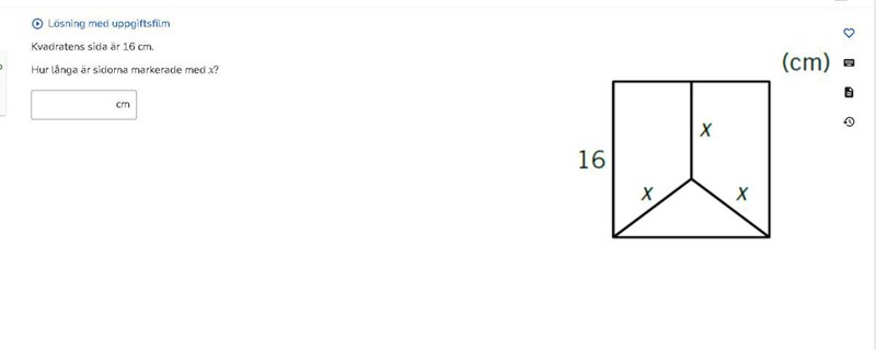 Mycket riktigt! Vi har alltså en triangel med hypotenusan x och kateten 8. Hur lång är den andra kateten? Om du vill fräscha upp dina kunskaper kring pythagoras sats, kan du läsa om den här. :)