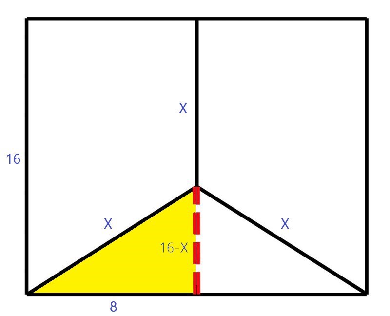 x^2 = 8^2 + (16-x)^2