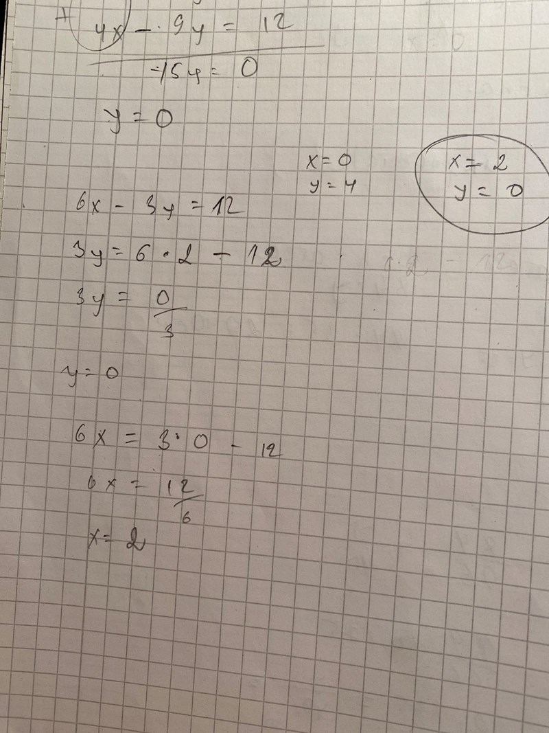 Frågan handlar om linjen 6x-3y-12 = 0.