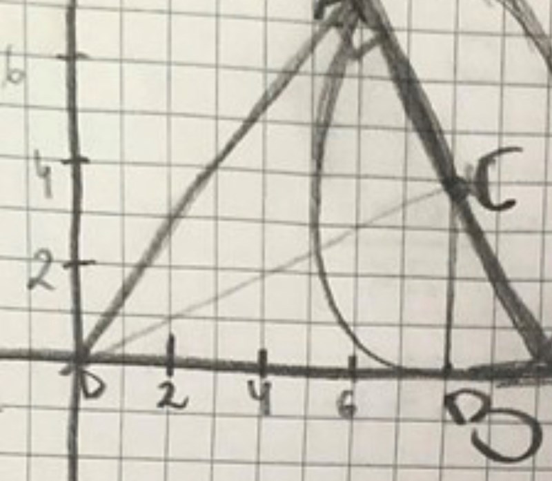 Lista också ut ekvationen för den räta linje som går igenom punkterna B och C.