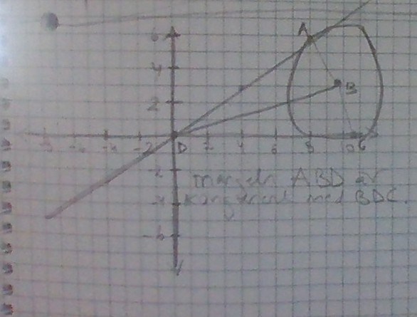 "triangeln ABD och BDC är kongurent, för de ser exakt likadana ut och vinklarna är lika stora"