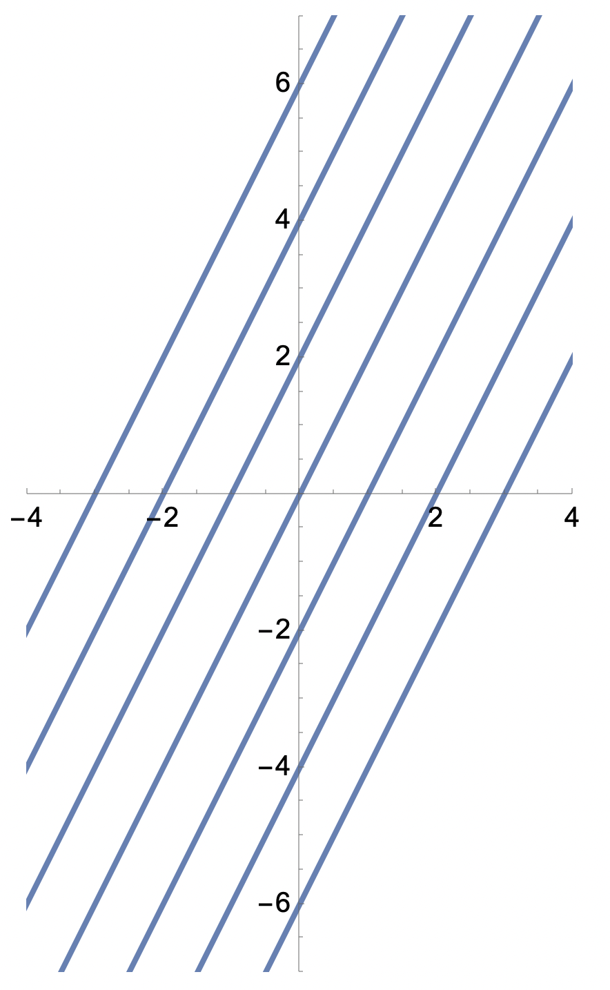 Nedan har jag ritat ett par riktningstangenter (men det finns ändligt många, alla parallella med varandra)