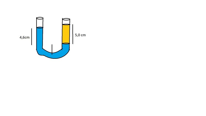 I ett U-rör finns vatten och olja enligt figuren. beräkna oljans densitet. i lösningen till uppgiften sdtår det att den U-formade vattenkroppen under dessa vätskepelare är i jämvikt vilket jag inte förstår, skulle verkligen vilja förstå detta