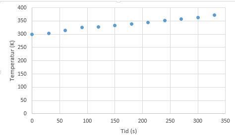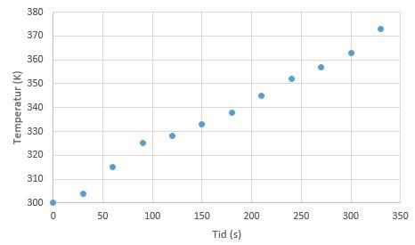 "att Gör en graf över temperaturen som funktion av tiden, dvs temperaturen på y-axeln (lodräta axeln) och tiden på x-axeln (vågräta axeln). Enheten på y-axeln ska vara kelvingrader. Använd grafen och ekvationerna för att ta fram vilken effekt P, spisplattan har"