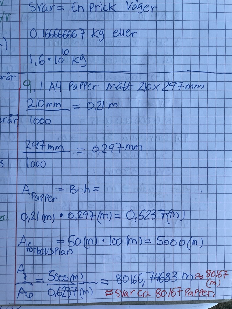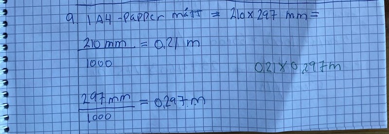 Uppgift 9. Först enhets omvandlar jag mm—> m.