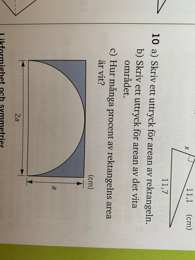 3) Beräkna halvcirkelns area dividerat med rektangelns area