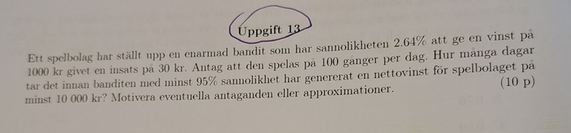 Hur många dagar tar det innan banditen med minst 95% sannolikheten genererar nettovinst?