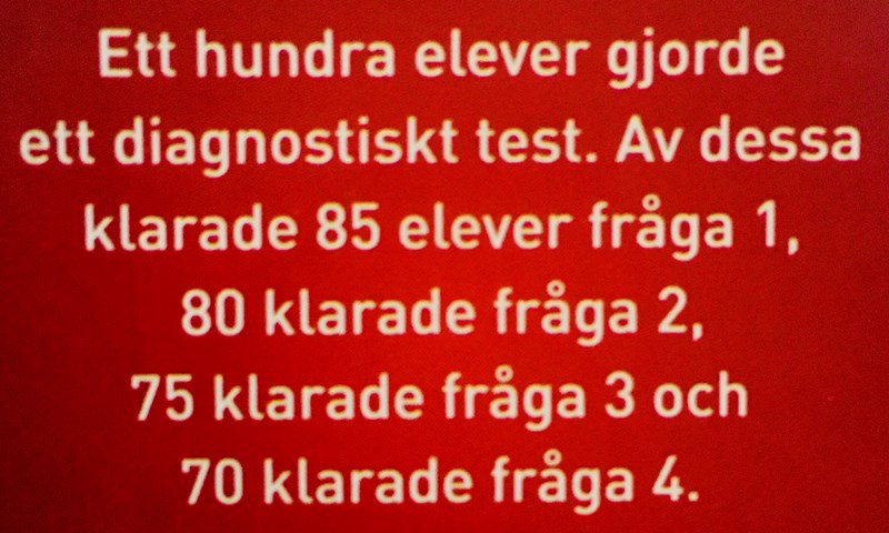 Jag tänker mig att antal elever som klarat alla fyra frågorna är x st.