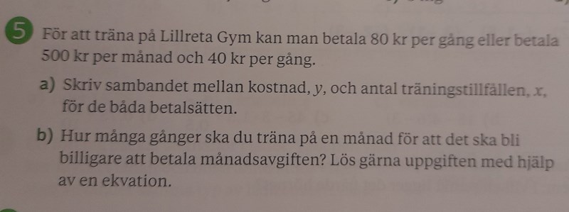 Hur många ggr ska man träna för att det ska bli billigare med månadsavgiften? OBS: Uppgift b)