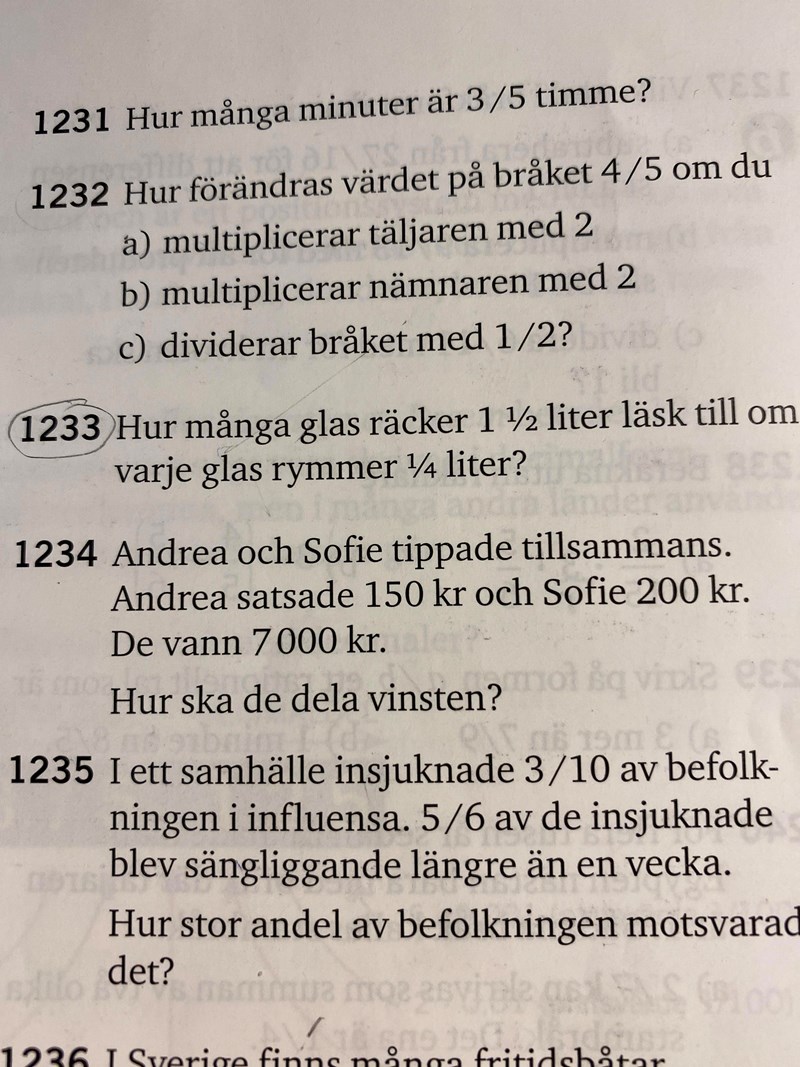 När jag försökt och lösa fråga 1233 så kunde jag inte ut det. Asså på vilket sätt jag ska lösa på pappret. Jag vet inte om jag är tydligt men jag behöver ett nytt sätt att lösa denna här frågan:)