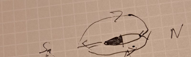 Det är många saker jag ej förstår i din figur. Jag förstår ej vad du menar att en person står framför ledaren med kompass norr till syd från sidan. Hur menar du att det ska se ut?