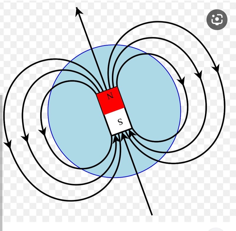 Jag ser att kompassen som ligger i mitten av jorden är i riktning syd-norr. De här fältlinjerna som kommer från den geografiska sydpolen till magneten sydpol. Är de från magneten? Var kommer dessa fältlinjer ifrån?