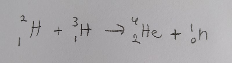 Forskning bedrivs för att kunna konstruera fusionreaktorer. Man tror att den lämpligaste reaktionen är en reaktion mellan deuterium och tritium. Vid reaktionen bildas helium 4 och neutroner. För att reaktionen skall ske krävs att temperaturen överskrider 40 miljoner grader. Antag att man måste tillföra värmeeffekten 200kW för att bibehålla denna höga temperatur. Hur många gram deuterium måste då reagera varje sekund för att reaktorn skall producera lika stor effekt som tillförs?