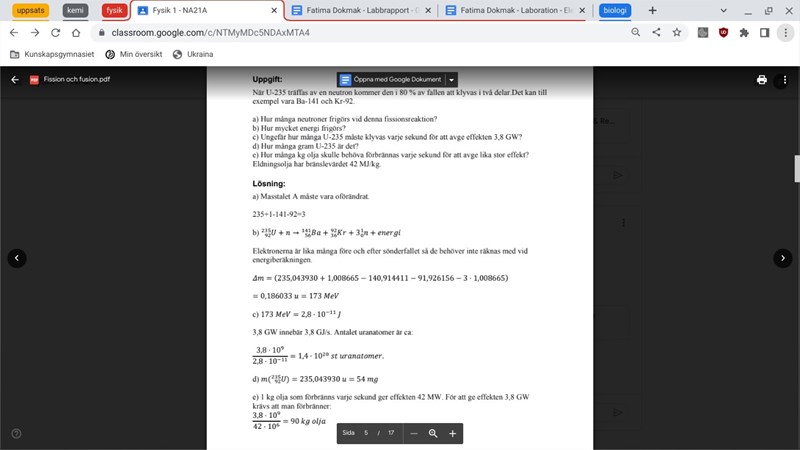 Behöver hjälp med fråga D, ska man inte ta 235 u i kg och sen ta 1,4*10²⁰/det man fick
