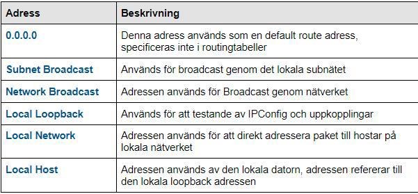 - Gateway adress: En IP-adress som anger vilken hostadress som ska länkas upp i routingtabellen
