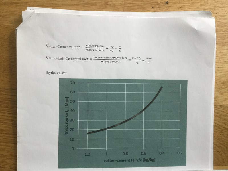 charlie2016 skrev:Ja det är helt korrekt Affe.men är det inte så att vi använder oss av vatten-luft-cementtal vlct som vi har i Formelsamlingen massa vatten + volym luft / massa cement?