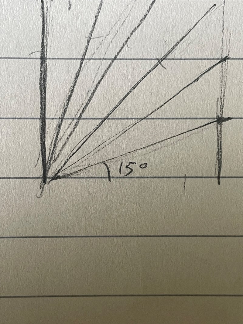 Så gör en ordentlig ritning, med gradbåge och linjal. Riktningen är given för n=1: den är 15 grader. Räkna sedan ut riktningen för n=2 och rita den. Osv.