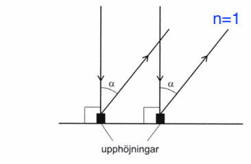 α mellan det vinkelrätt infallande ljuset och det reflekterade ljusets maximiriktningar, se figur.
