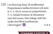 Jag har fastnat på en fråga som lyder: i en förening finns det 28 medlemmar. Proportionen mellan kvinnor och män är 3:4. Året därpå är proportionen 3:5. Antalet kvinnor är samma. Hur många män har under året blivit medlemmar i föreningen?
