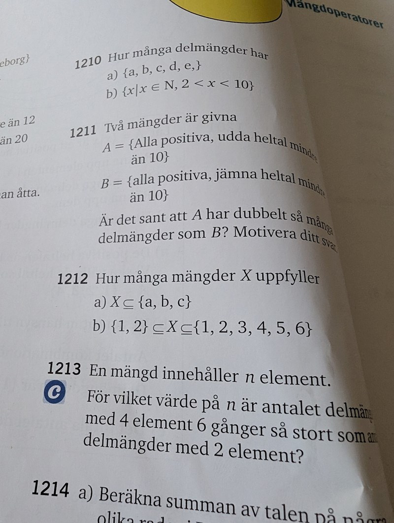 Jag förstår inte frågan 1212 a). Kan ej tolka uttrycket. Alla element av X finns i mängden abc?