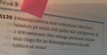 jag försökte ställa upp det med hjälp av felmarginalsekvationen jag fått i boken: