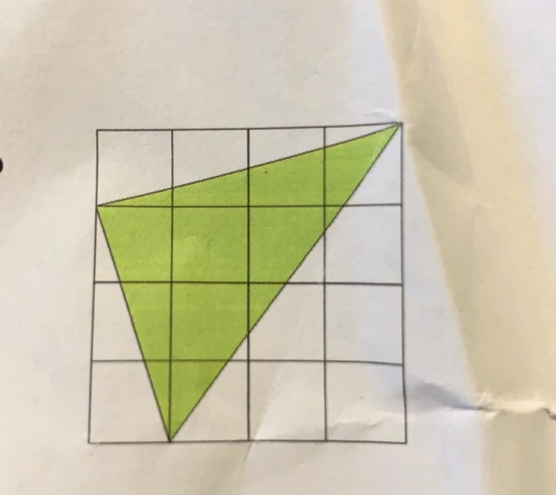 Den stora tkvadratenn består av de tre vita trianglarna plus den gröna triangeln. Arean av den gröna trianglen är arean av den stora kvadraten (=16 rutor) minus arean av de tre vita trianglarne, ser du det?