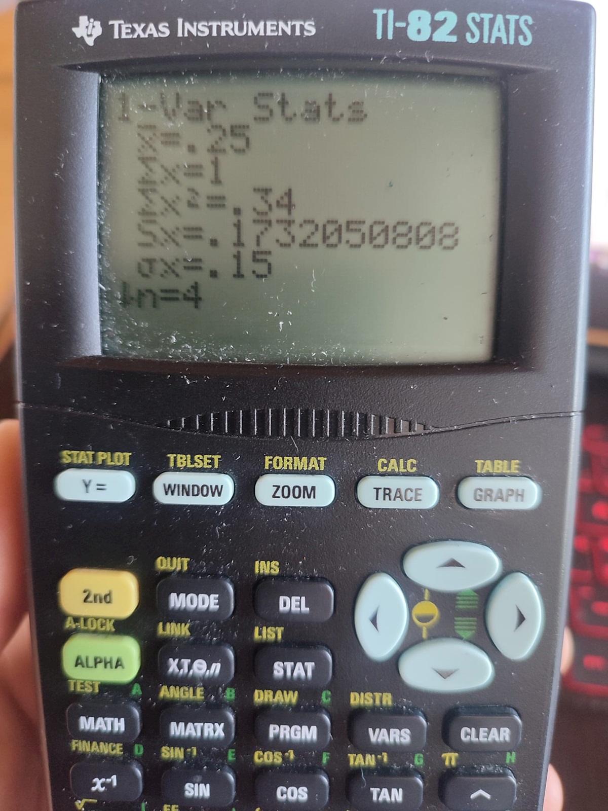 I nästa försök beräknar du sigma med räknarens program och det stämmer inte då heller!