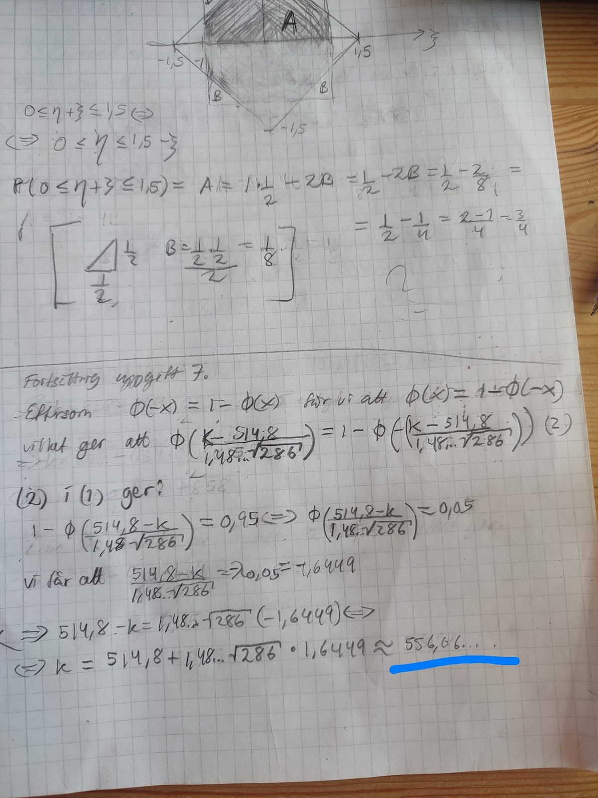 Så jag beröknade inte variansen men sigma direkt med miniräknaren och 514,8 är det approximativa väntevärdet för summan av Xi1,...xi286?