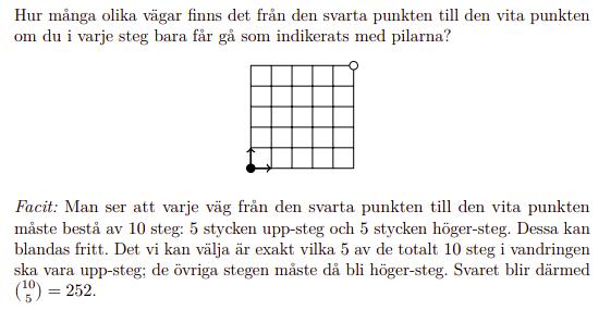 Svaret är alltså antalet sätt välja ut 5 upp-steg av 10 möjliga