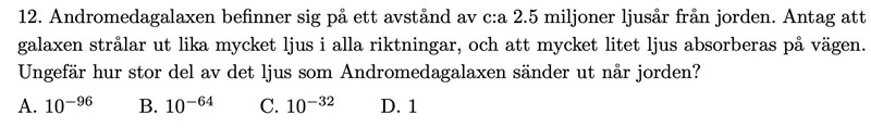Hur mycket av ljuset från andromedagalaxen når jorden?