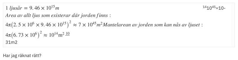tack, men är det rätt att dividera arean av det utsända ljuset med tvärsnittet av jordens area mot slutet?