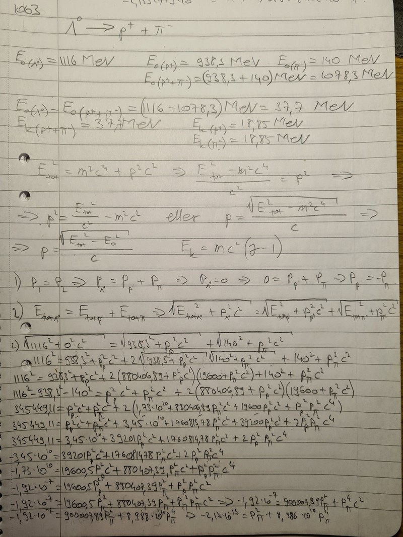 Hur mycket energi får protonen och pionen efter sönderfallet?