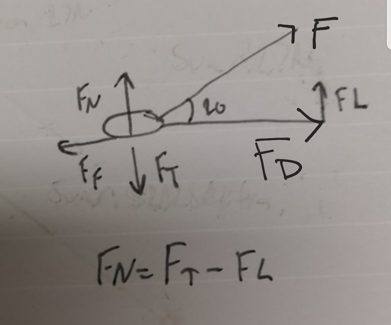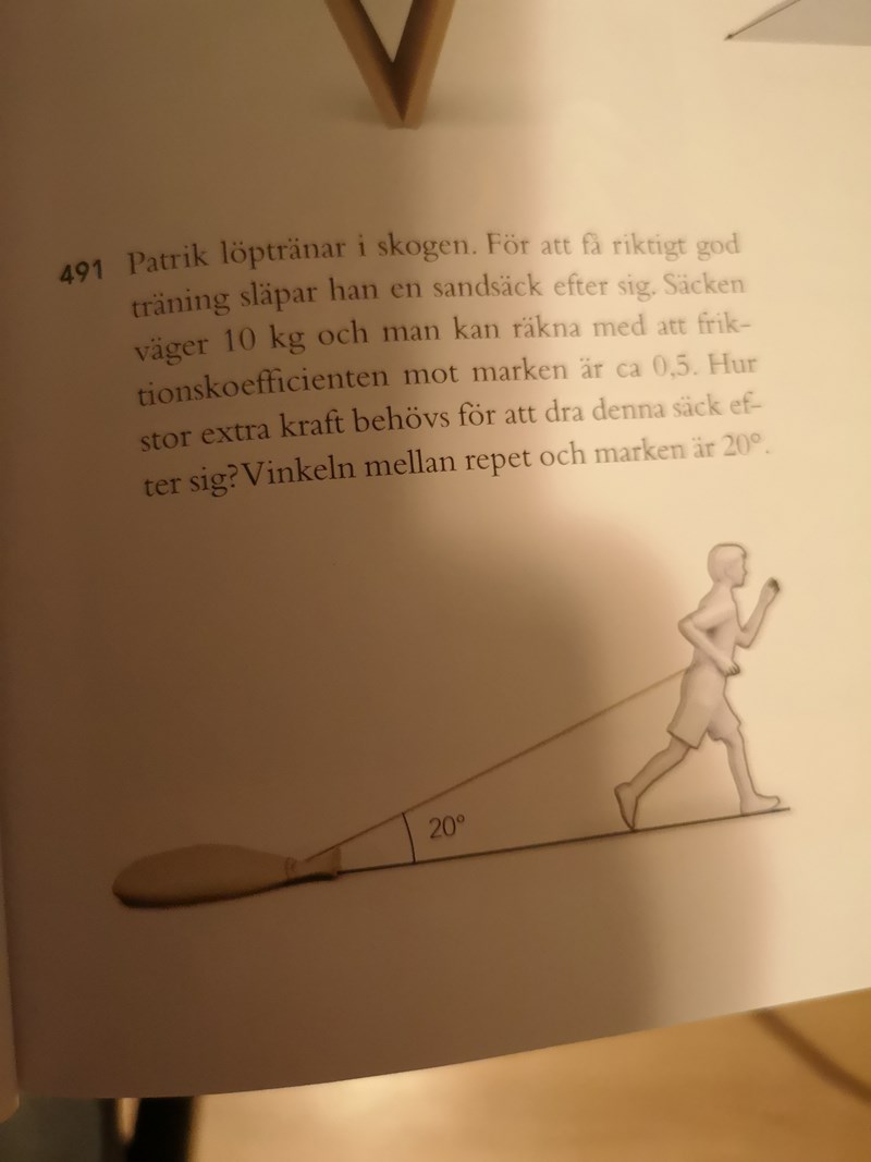 Yngve skrev:Facit har rätt. Normalkraften är inte 98,2 N eftersom Patrik drar säcken både uppåt och framåt.